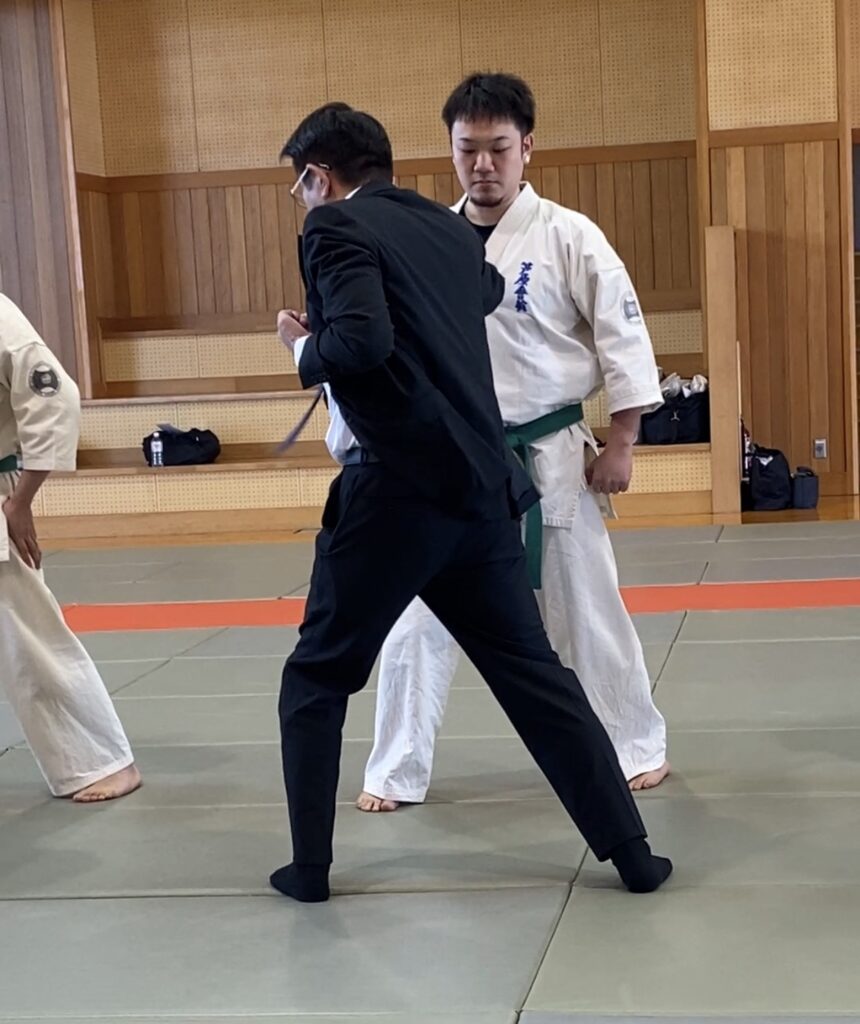 審査会後の館長稽古では、サバキの基本構造である裏を取る1,2のポジショニングの稽古法でした。これは館長から改めてレクチャーをされて気づくメンバーも多く、サバキの有効性を体感しながら稽古法としての刷り込みができました。